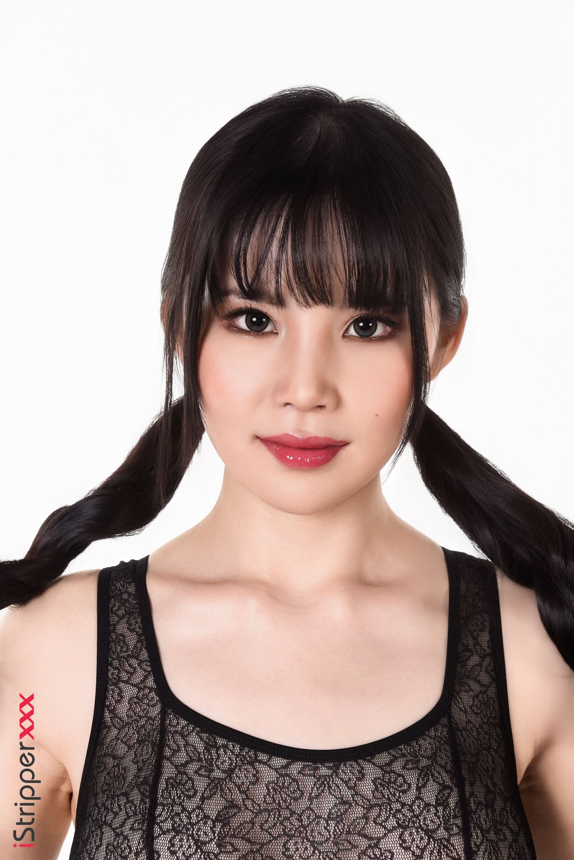 Marin Niko poses in black lace lingerie with pigtails and smiles cute. She takes off top to show tits, sucks big black dildo deep, and fucks pussy with it while spreading legs.