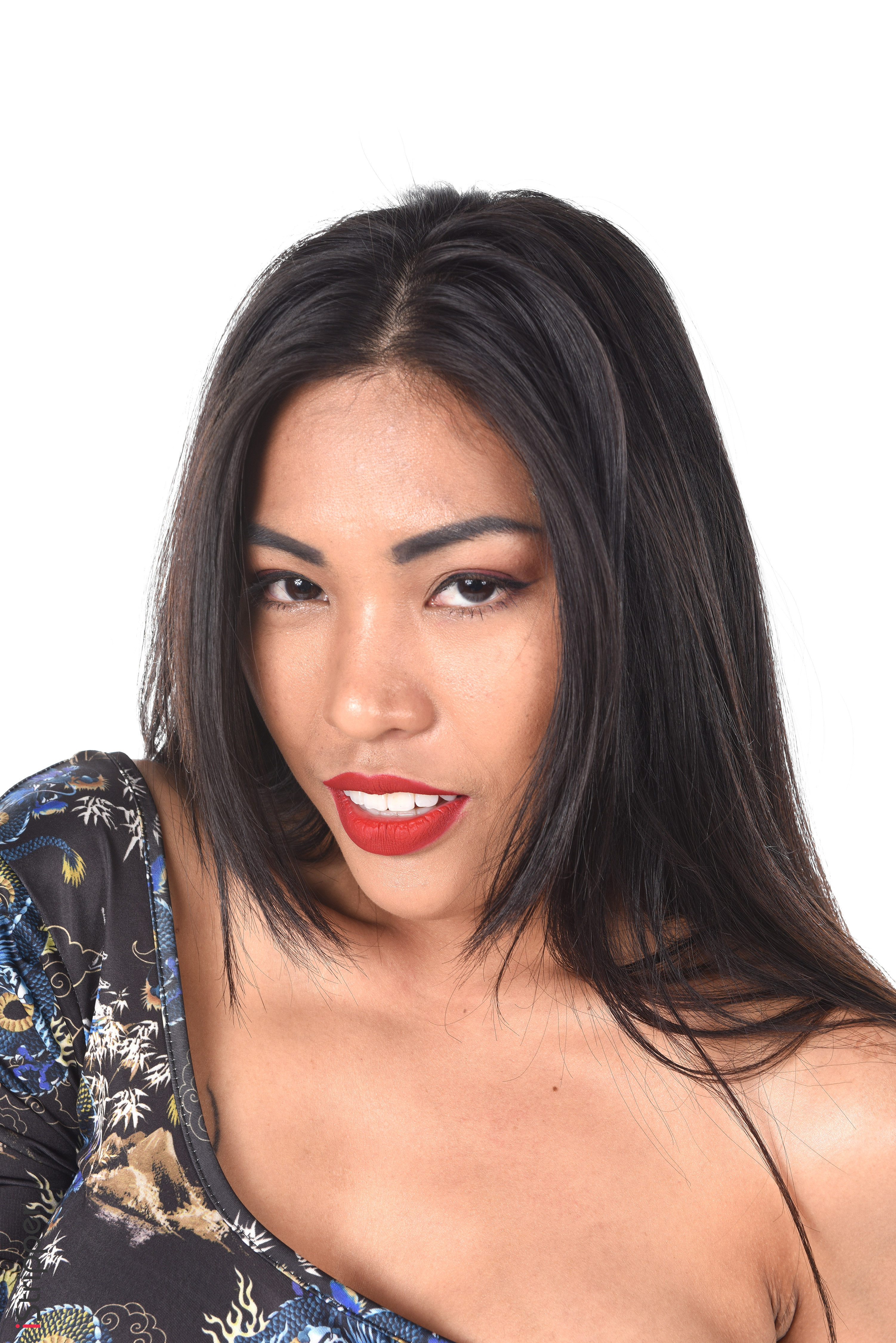 Poopea Pons looks like a fit Asian babe with black hair and tattoos on her chest and hips. She gets naked in different poses, spreading her legs wide to show her shaved pussy and tight ass while rocking blue high heels.