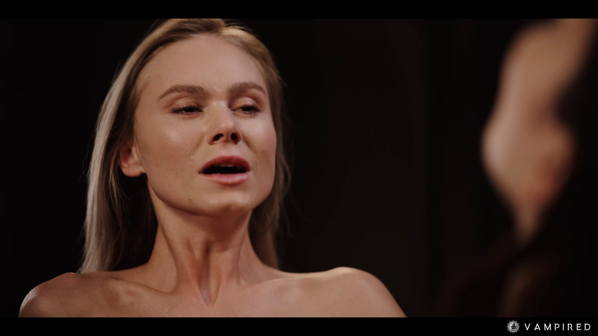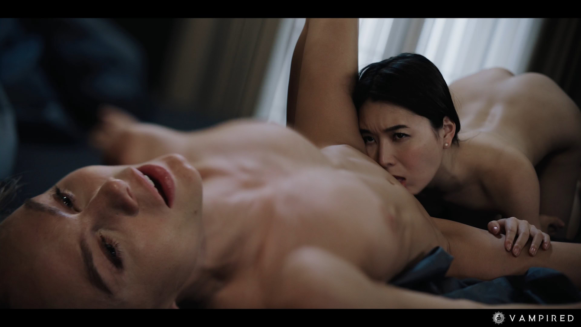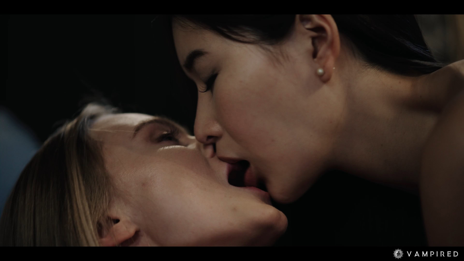 Rikako Katayama kisses a blonde woman hard on the bed. She fingers her pussy and bites her neck with fangs out.