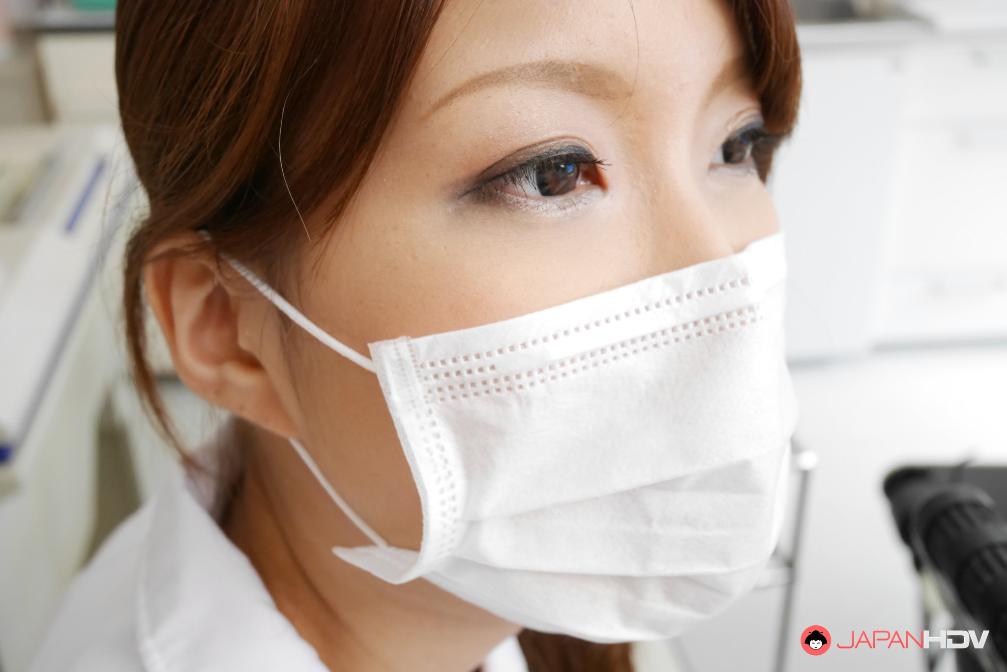Yume Mizuki checks the guy's teeth in the office with her white uniform shirt open wide so her big tits hang out right over his face. She pushes one tit into his mouth while she holds his jaw open and pokes around inside with her tool.